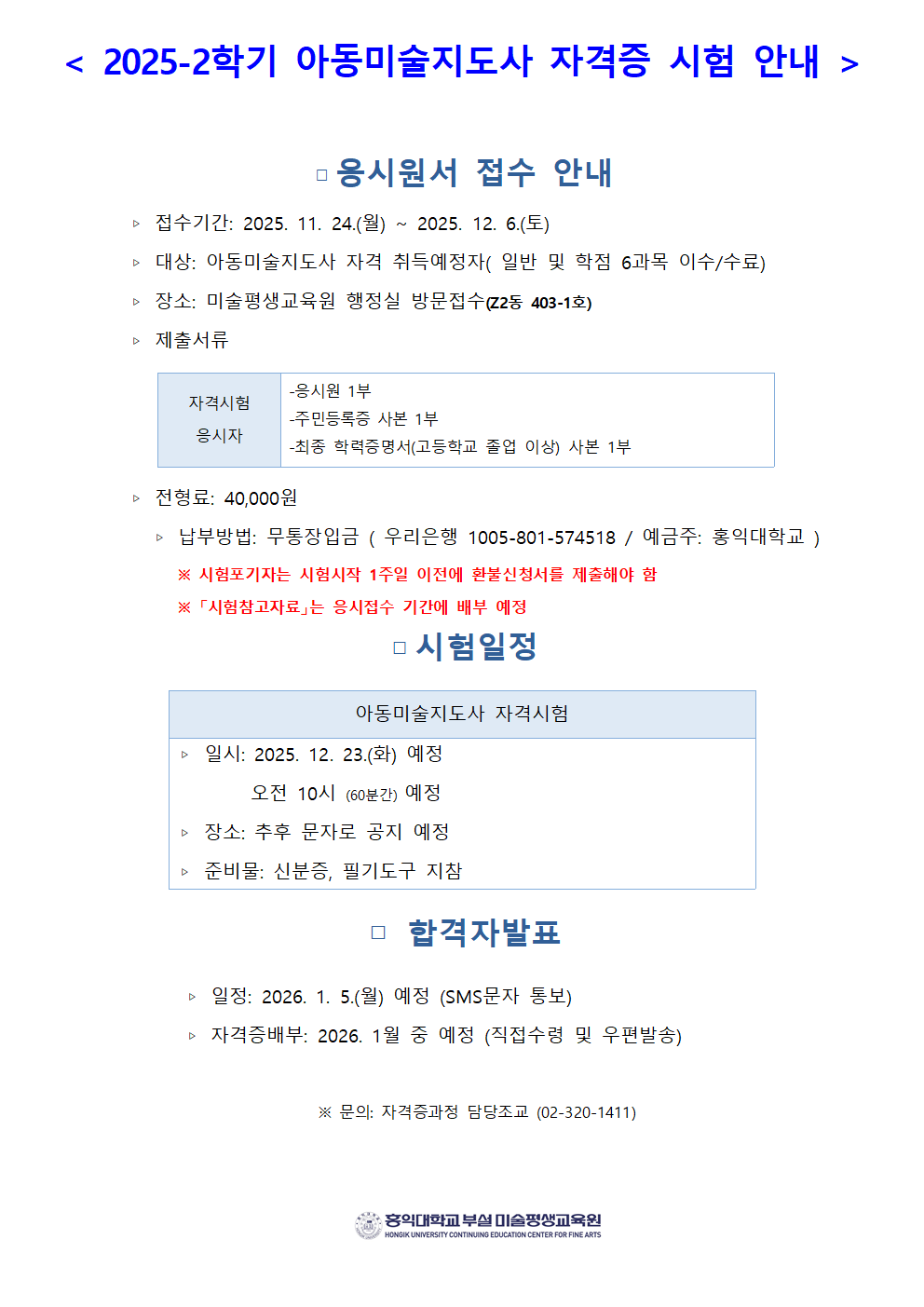 [자격증] 2025-2 아동미술지도사 자격증 시험 안내